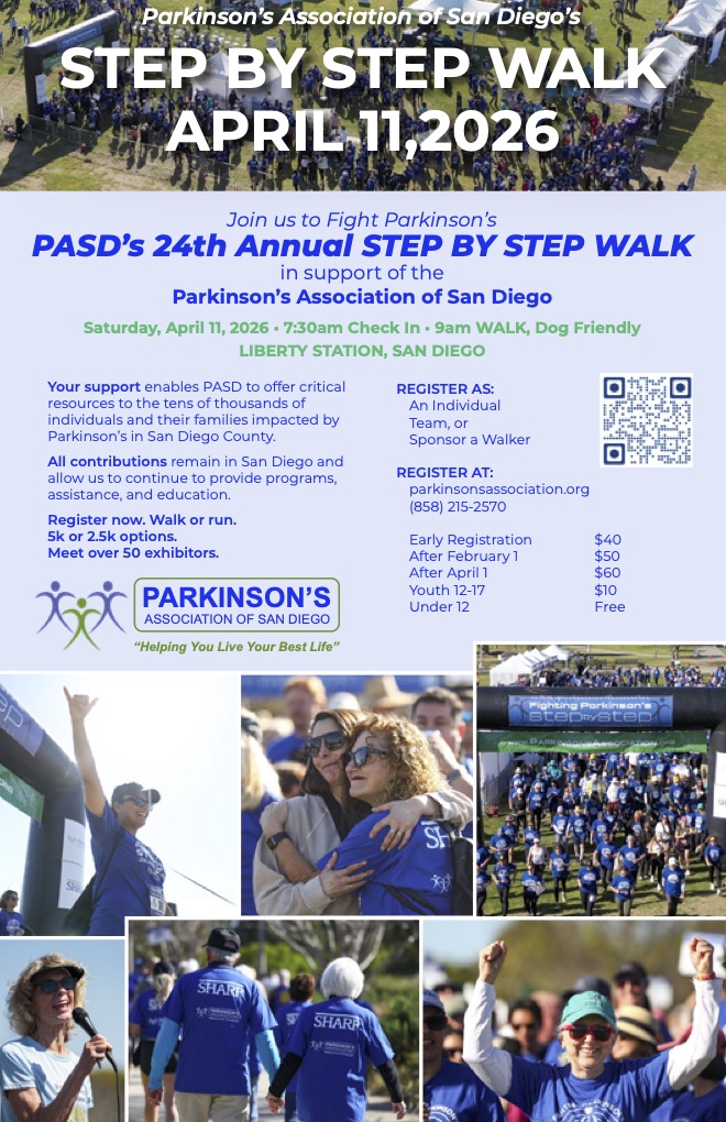 Early registration until January 31, then prices increase. Walk to support the Parkinson’s Association of San Diego.